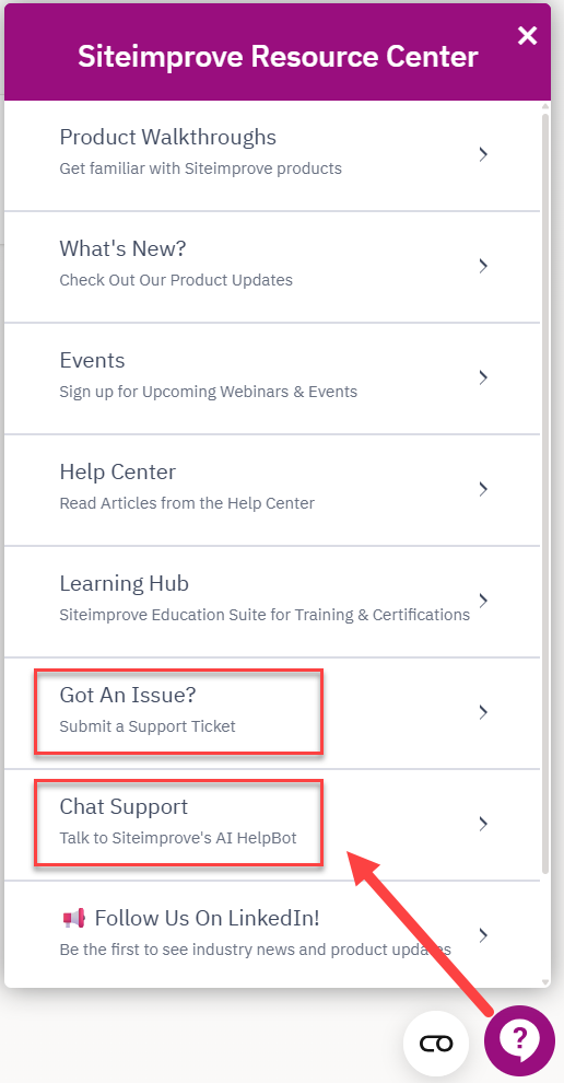 Please contact Siteimprove technical support with any questions regarding the Siteimprove Platform.