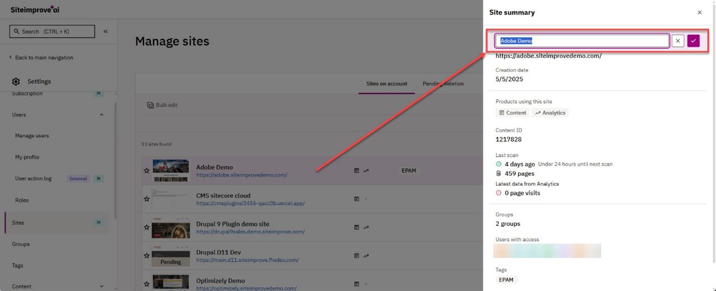 This article is intended to inform you about the different ways to edit a site within the Siteimprove platform.