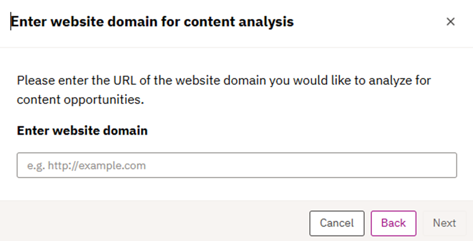 3.2.1 After selecting “Analyze existing content” from the previous step, the user needs to enter the domain/URL they want to use for analyzing the existing content.