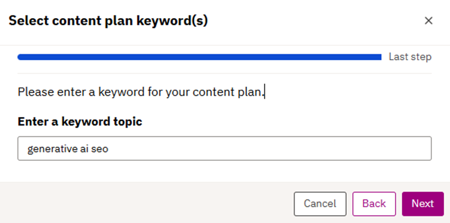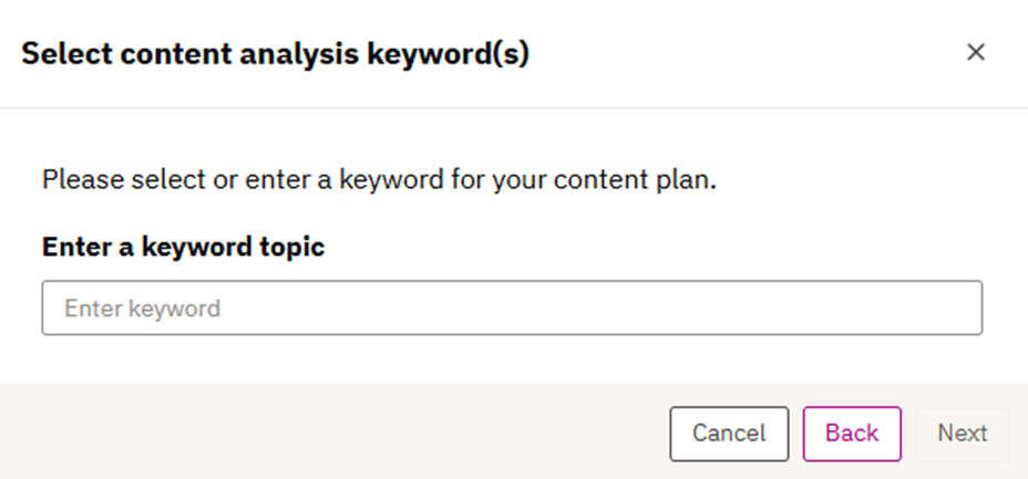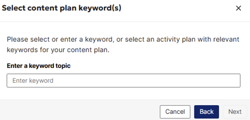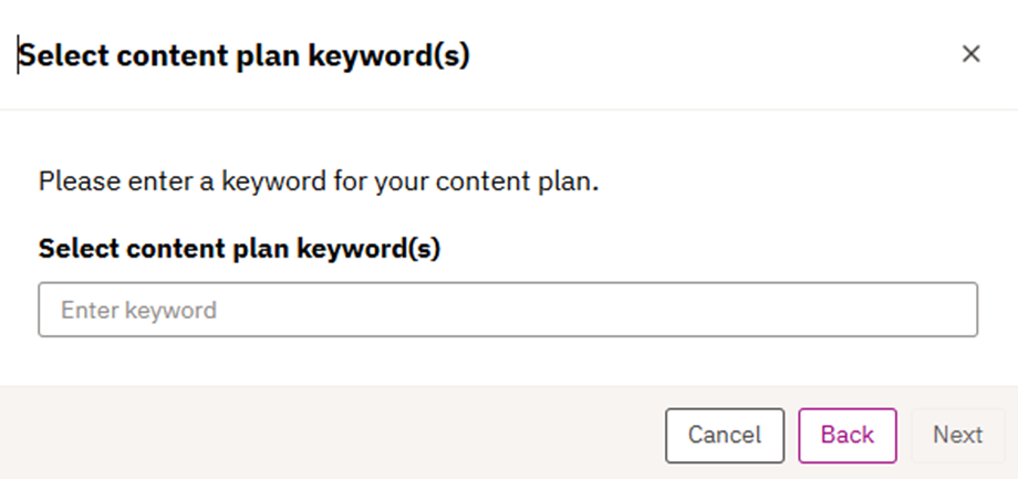 5. Here, the user can either add a keyword/topic they would like to target as part of the content plan creation flow.