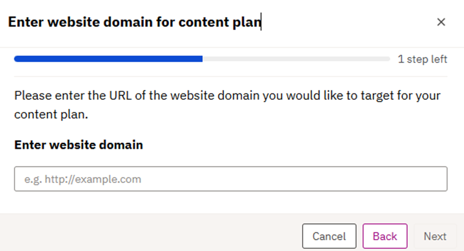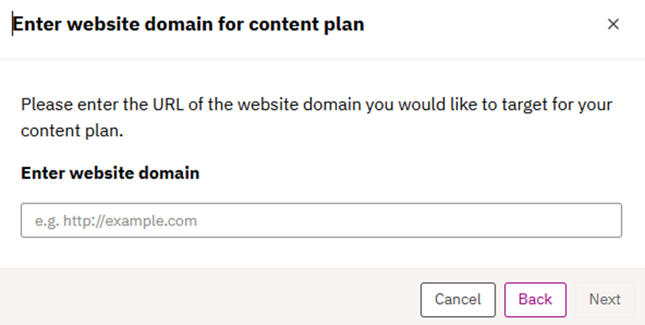 4. After selecting “Plan and organize content” from the previous step, the user needs to enter the domain/URL they want to use for the content plan