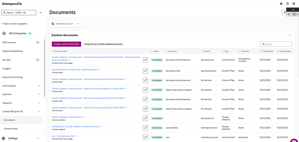 Content teams have long suffered from fractured workflows – they juggle separate tools for keyword research, competitor analysis, planning, briefing, and performance tracking. That fragmentation creates content guesswork and wastes resources. Content Blueprint AI, which includes content analysis documents, content planning, and content briefs, tackles this problem head-on. When embedded into Siteimprove’s Intelligence platform, it creates a single source of truth for SEO and content strategy and eliminates hours of manual research. Content Blueprint AI components are essentially AI-driven reports. They use advanced semantic analysis to turn mountains of data into prescriptive guidance that content teams can act on.