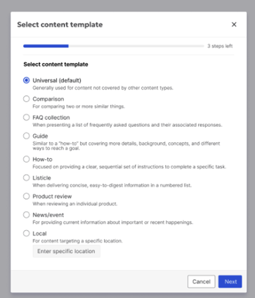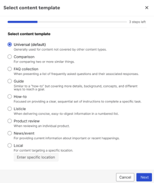 3.1.1 Select a template (formerly subtype): Comparison, FAQ Collection, Guide, How-to Tutorial, etc.